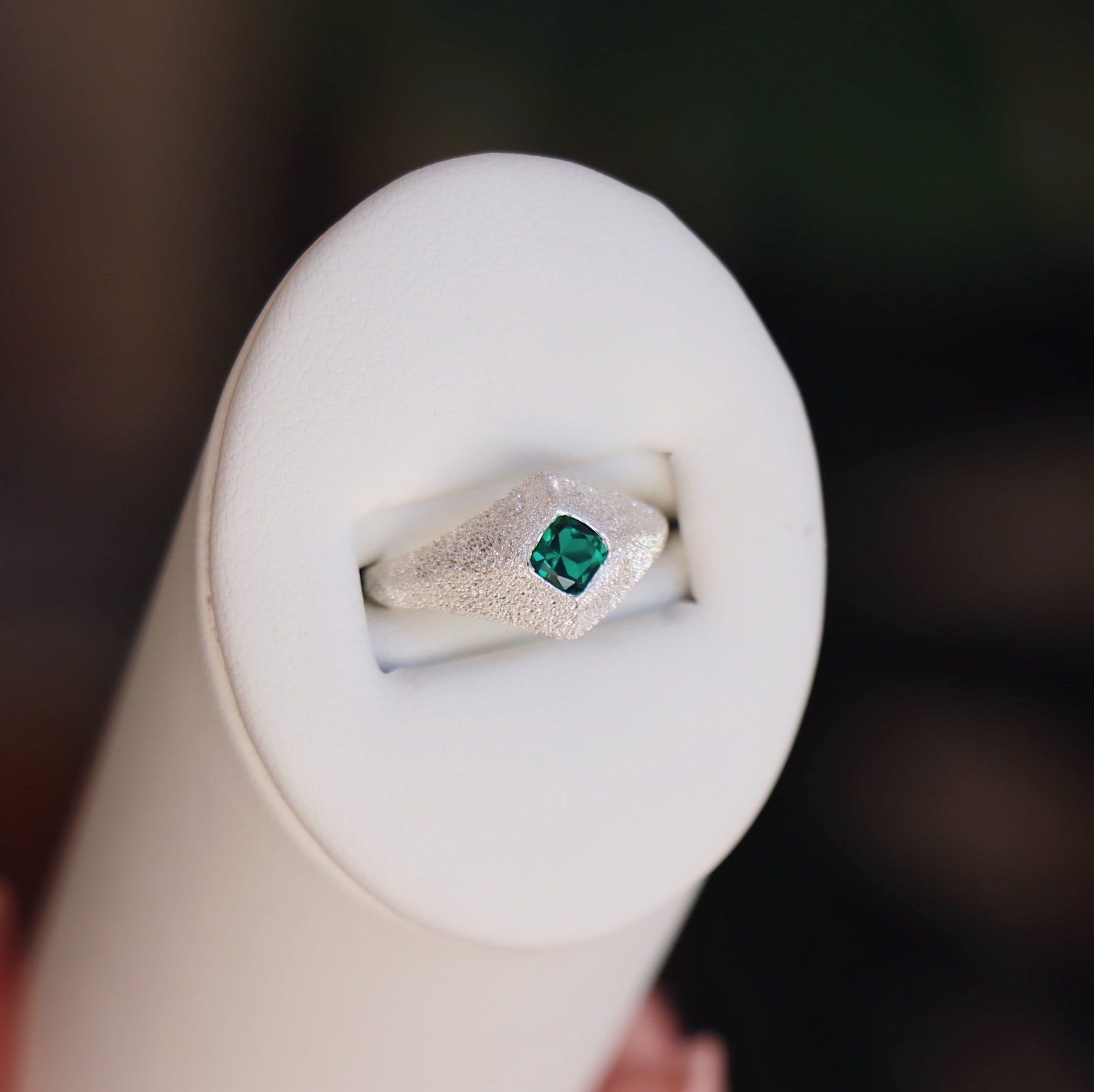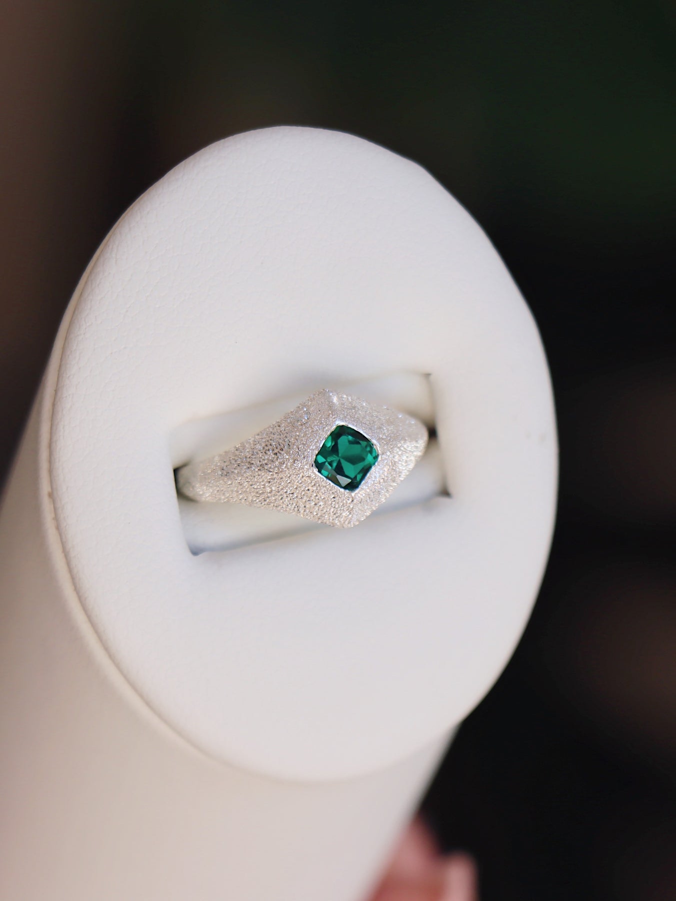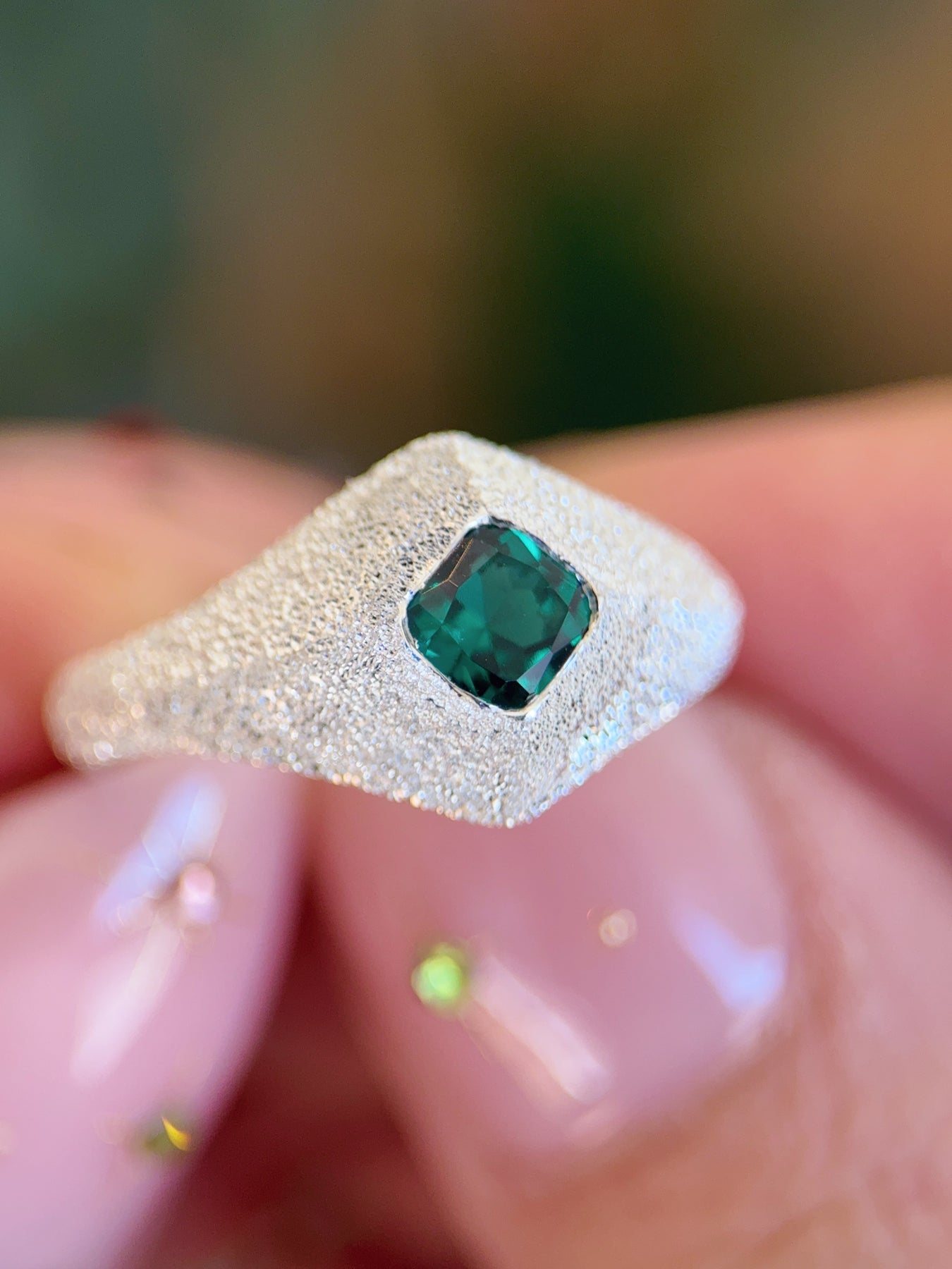The Freya is a gorgeous glittering signet style ring. The flashy texture compliments your gemstone choice in such a unique way! The Aquamarine and the Garnet are the only two gemstones with checkerboard faceted face, all other gems have a traditional flat face.