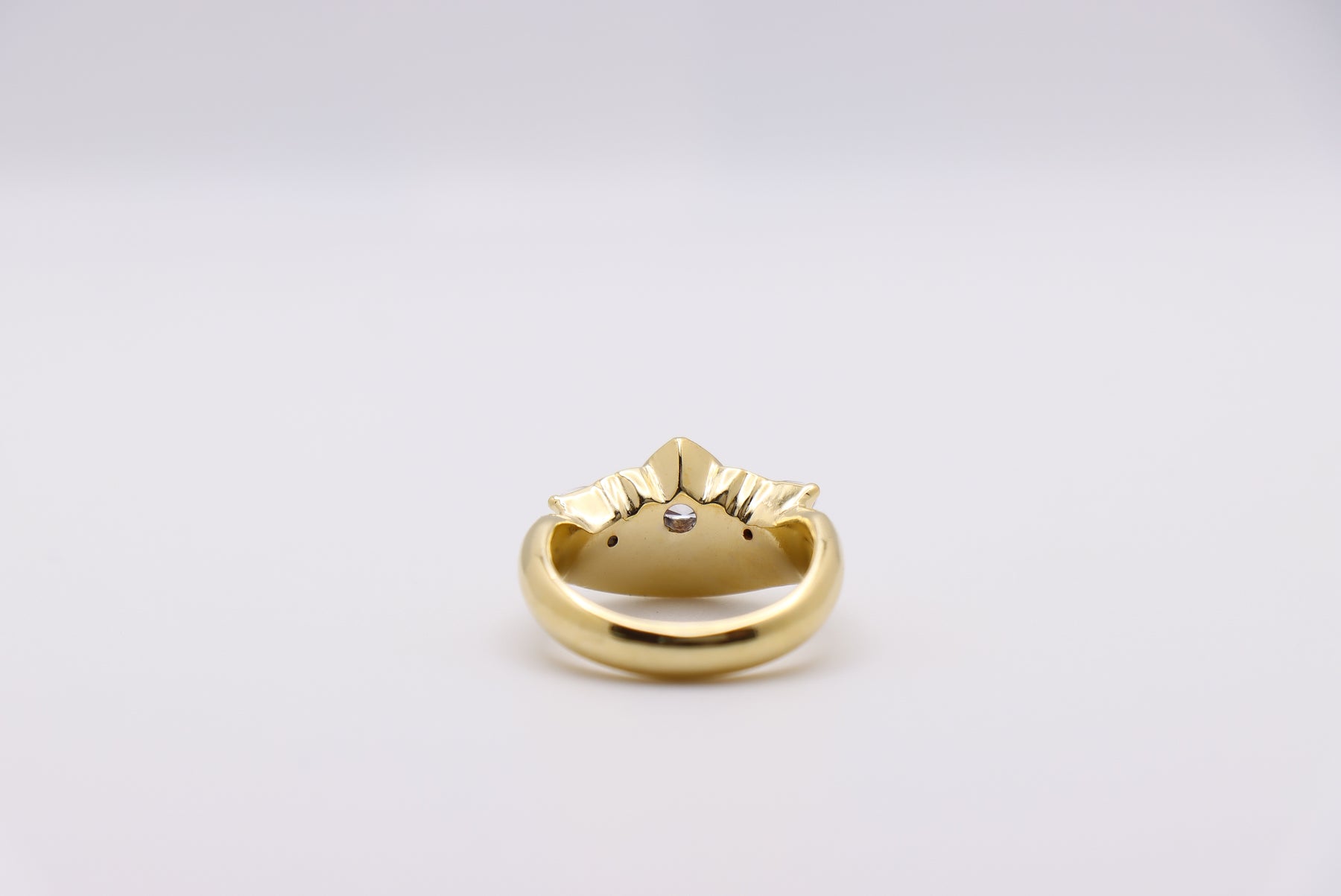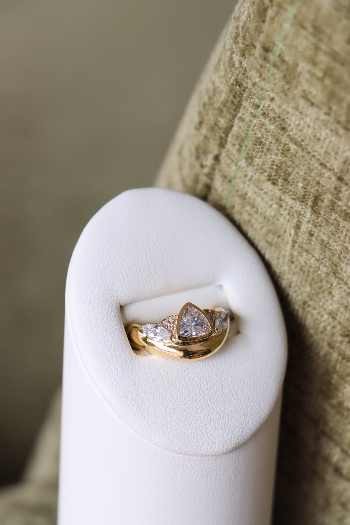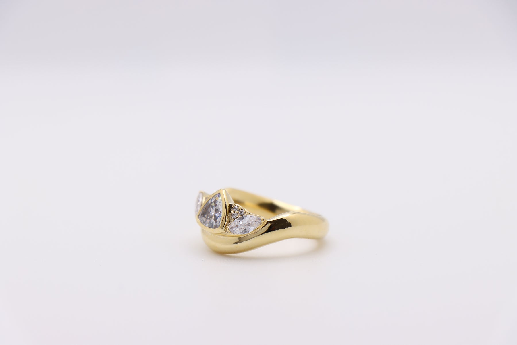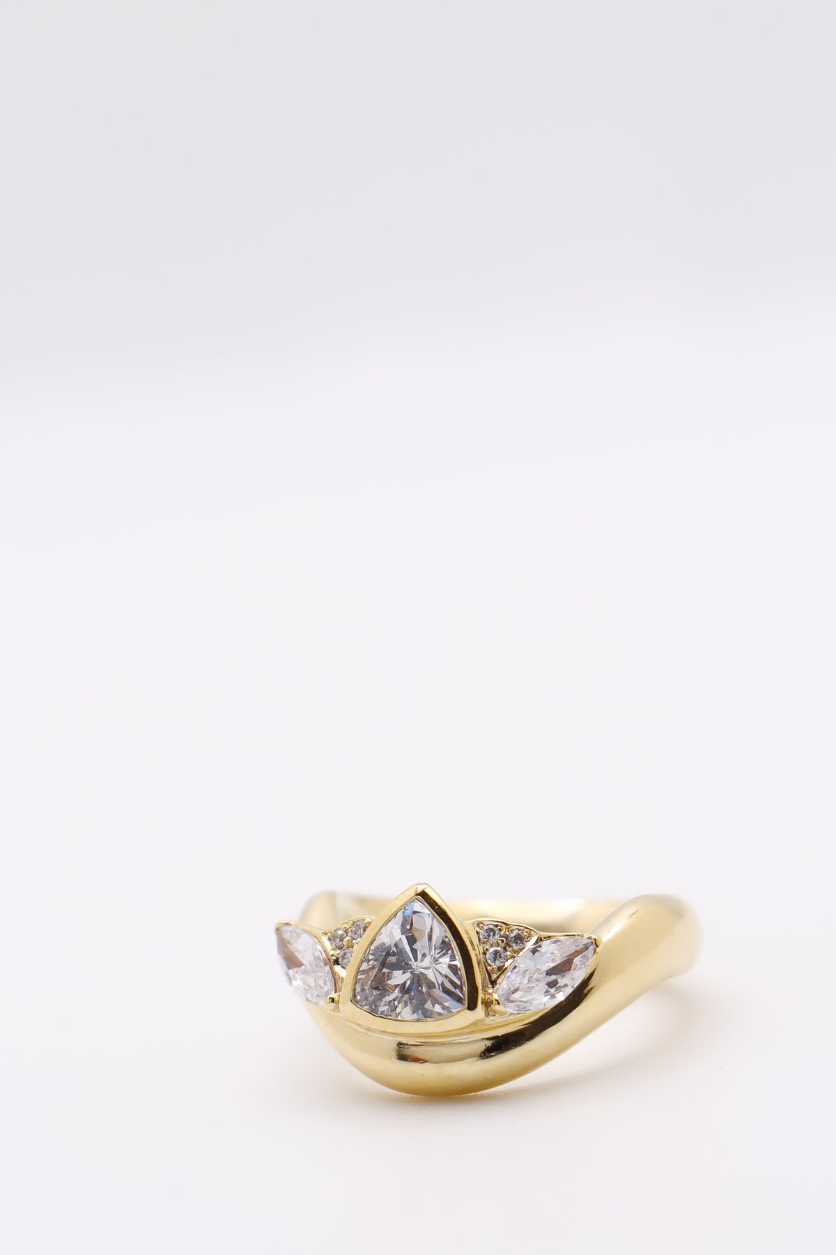 This gorgeous ring is completely handmade by me in my studio and can be made in 10k,14k, or 18k yellow gold. If you require a different metal or have custom changes you'd like to make, please email me at admin@miteramade.com. If you are looking to have this ring made with natural diamonds, please email me your budget and requirements and I will be happy to source that for you.